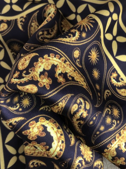 Black with Golden Paisley Silk Pocket Square
