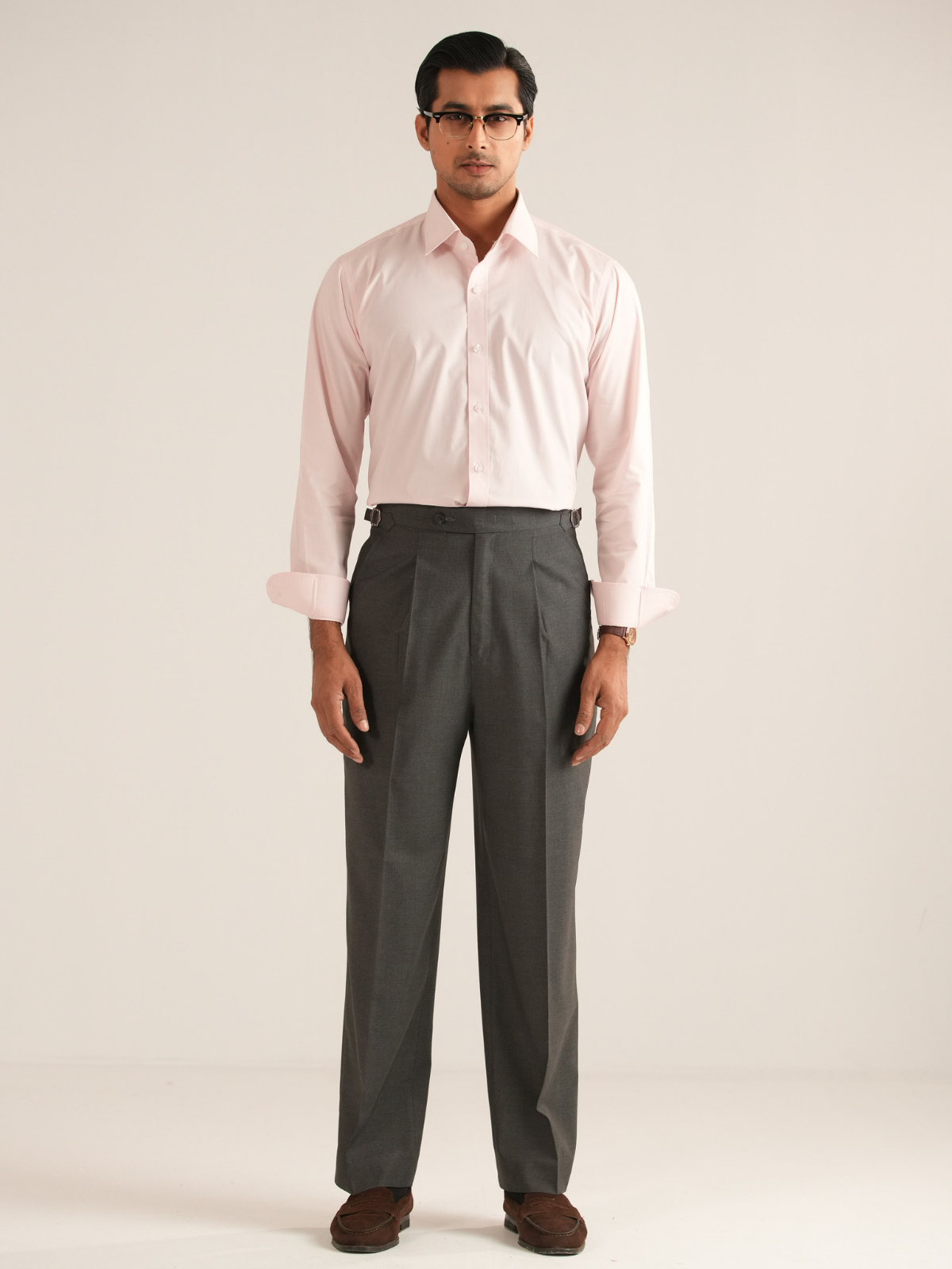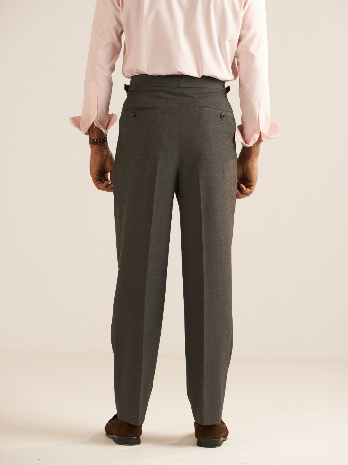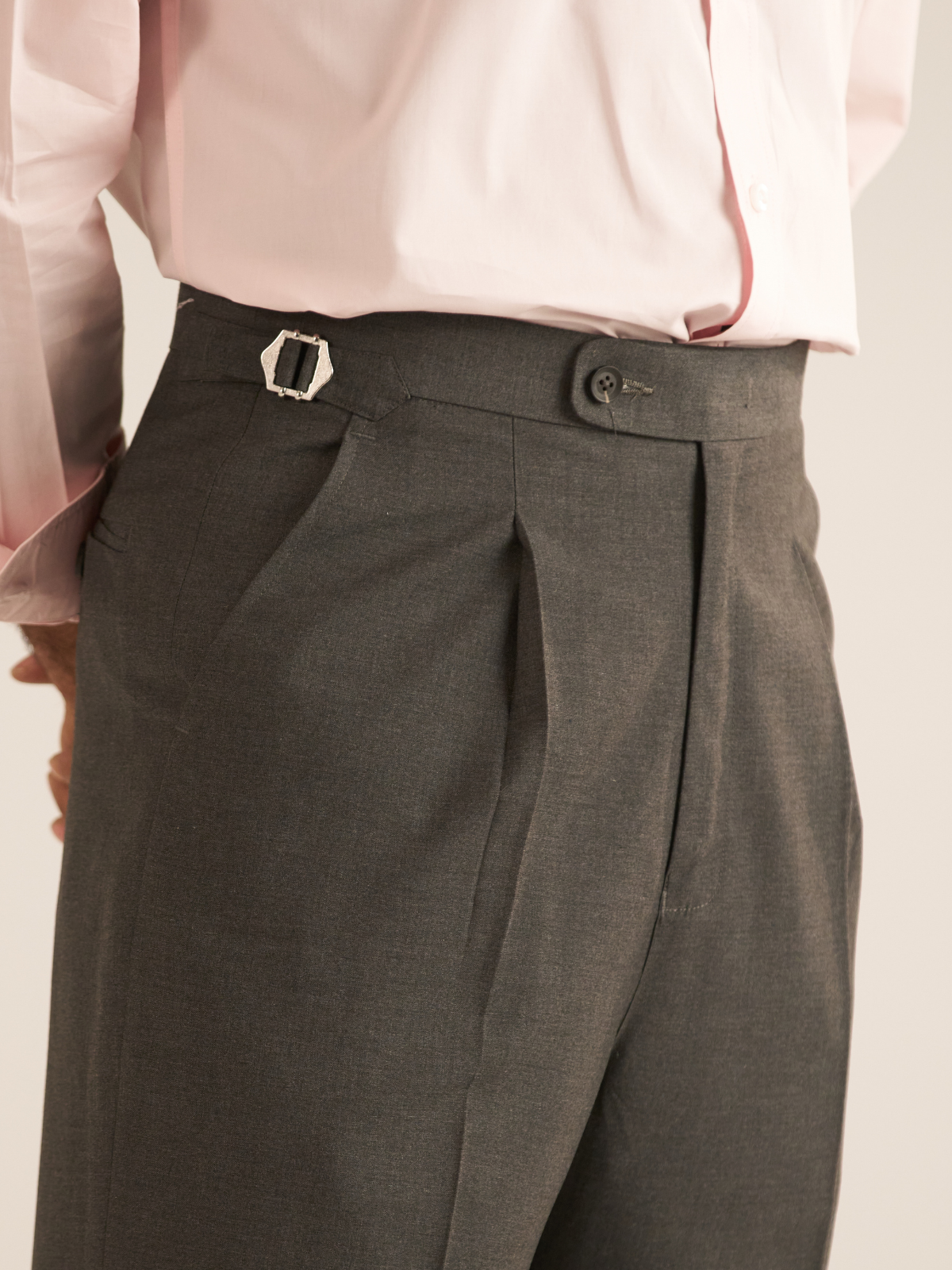- Trousers cut with a sharp, streamlined silhouette