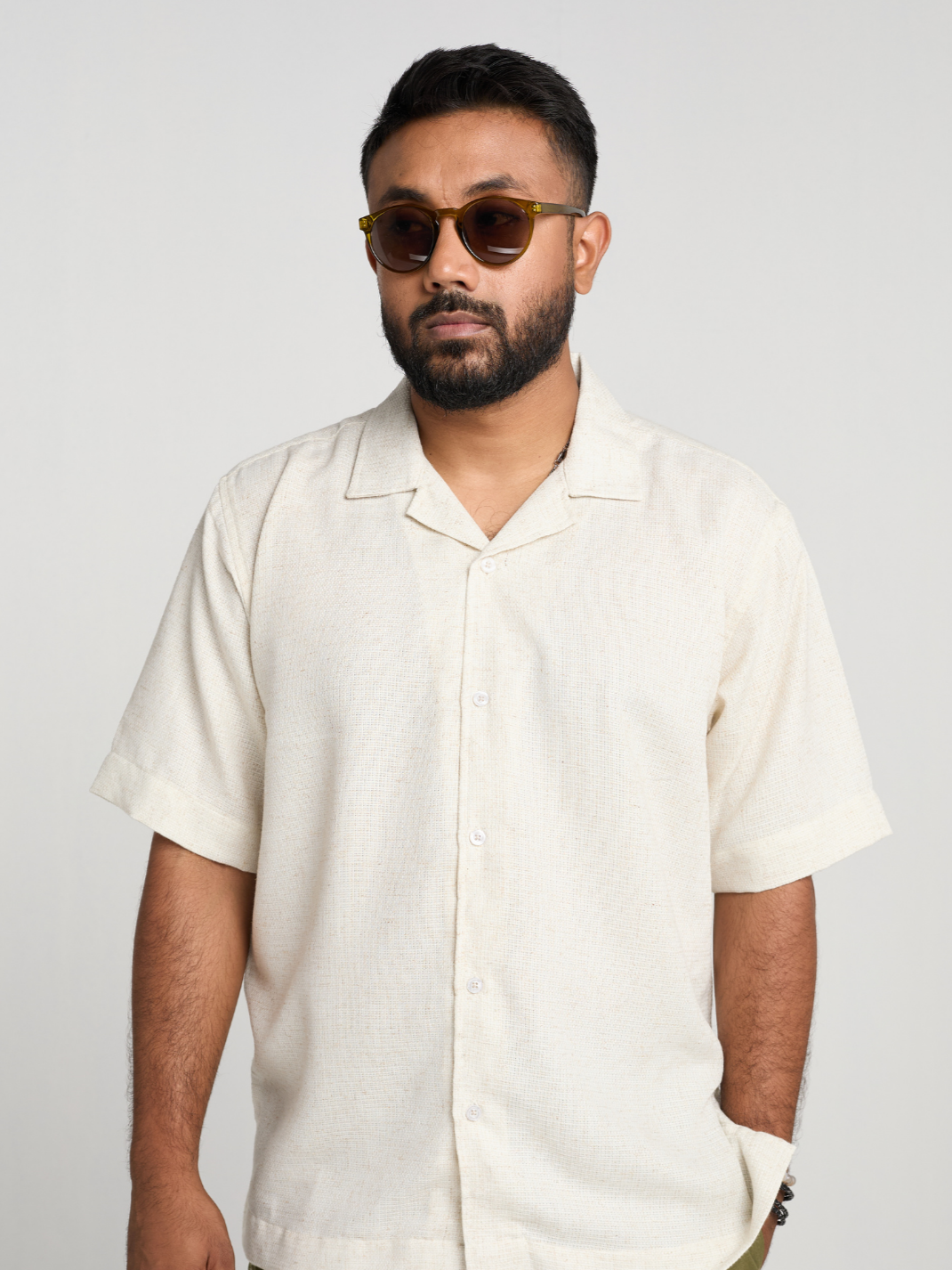 Boxy Cuban Collar Shirt – Natural Off-White Weave