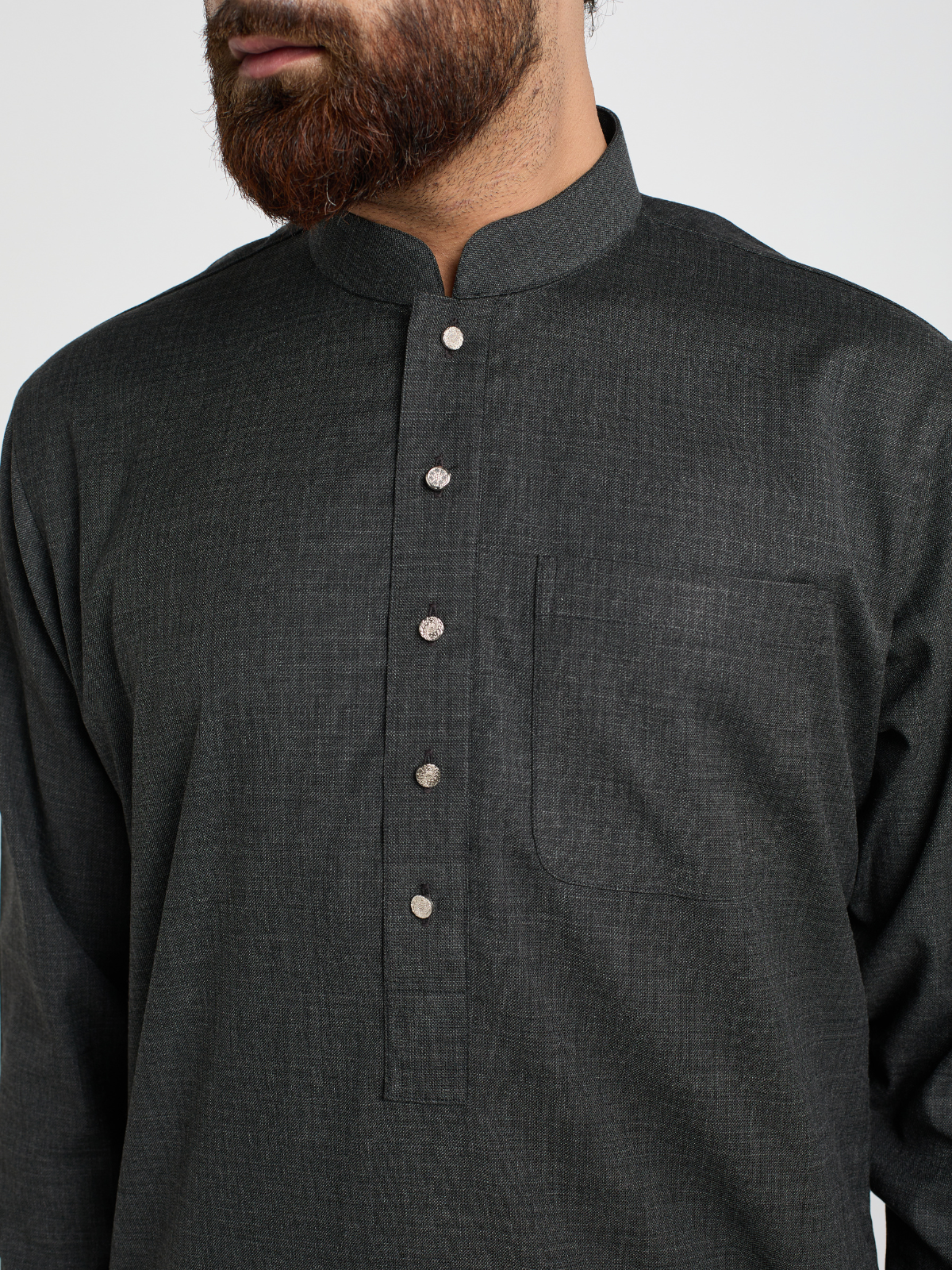 Designed in a modern tailored fit — structured at the shoulders and chest, relaxed through the body for comfort without compromising elegance.