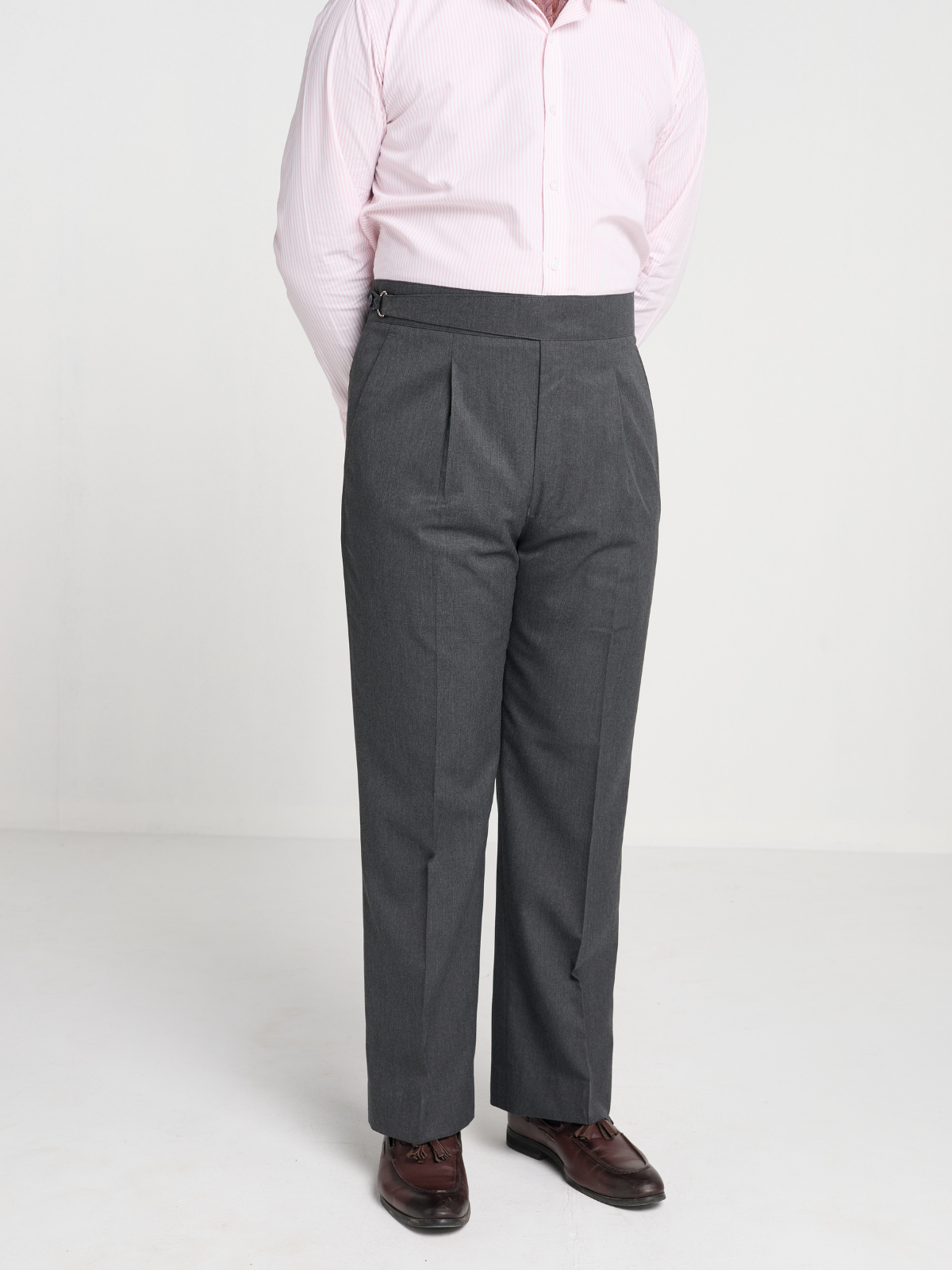 High-Waisted Wool Blend Pleated Trouser – Charcoal Grey