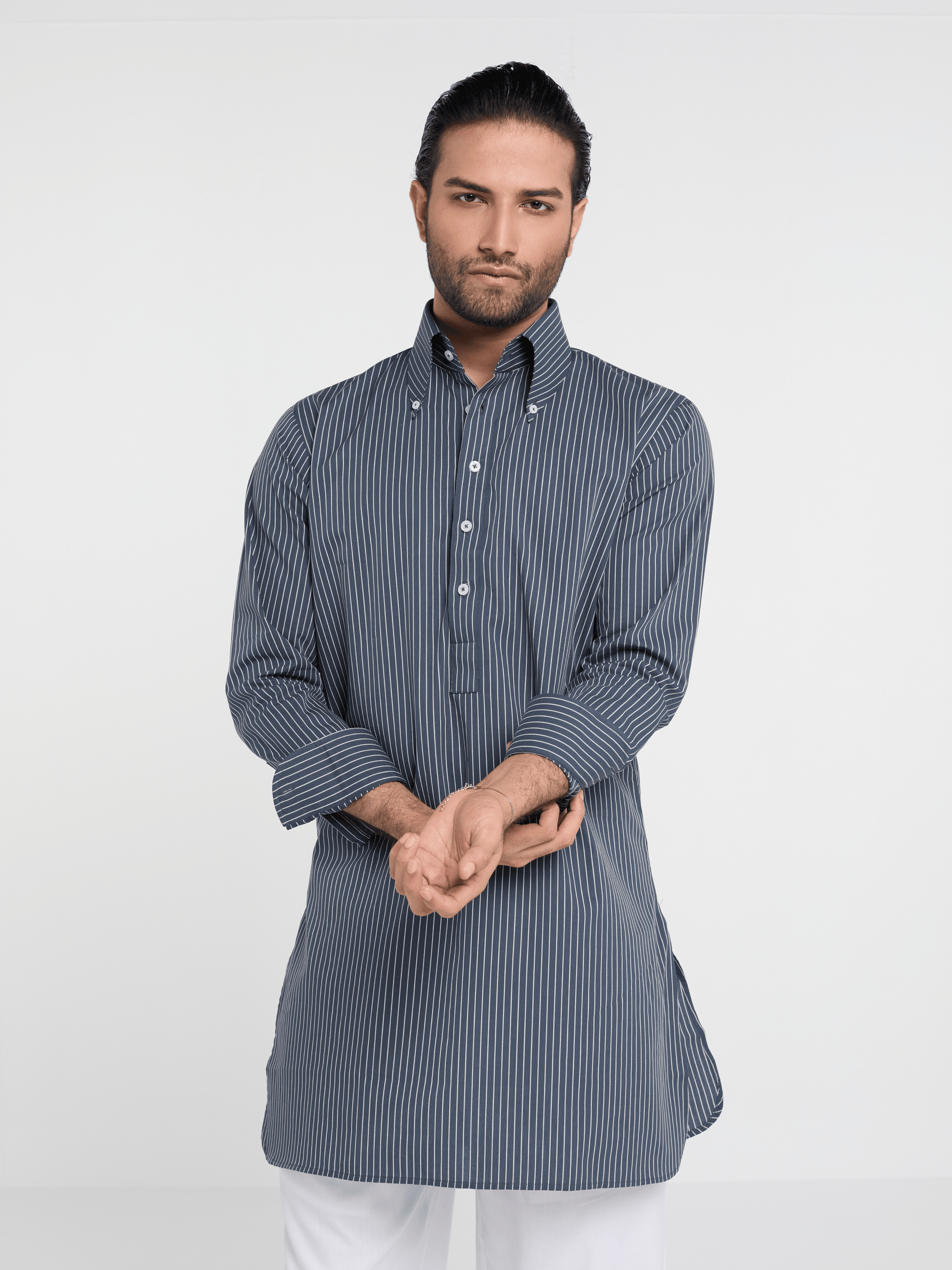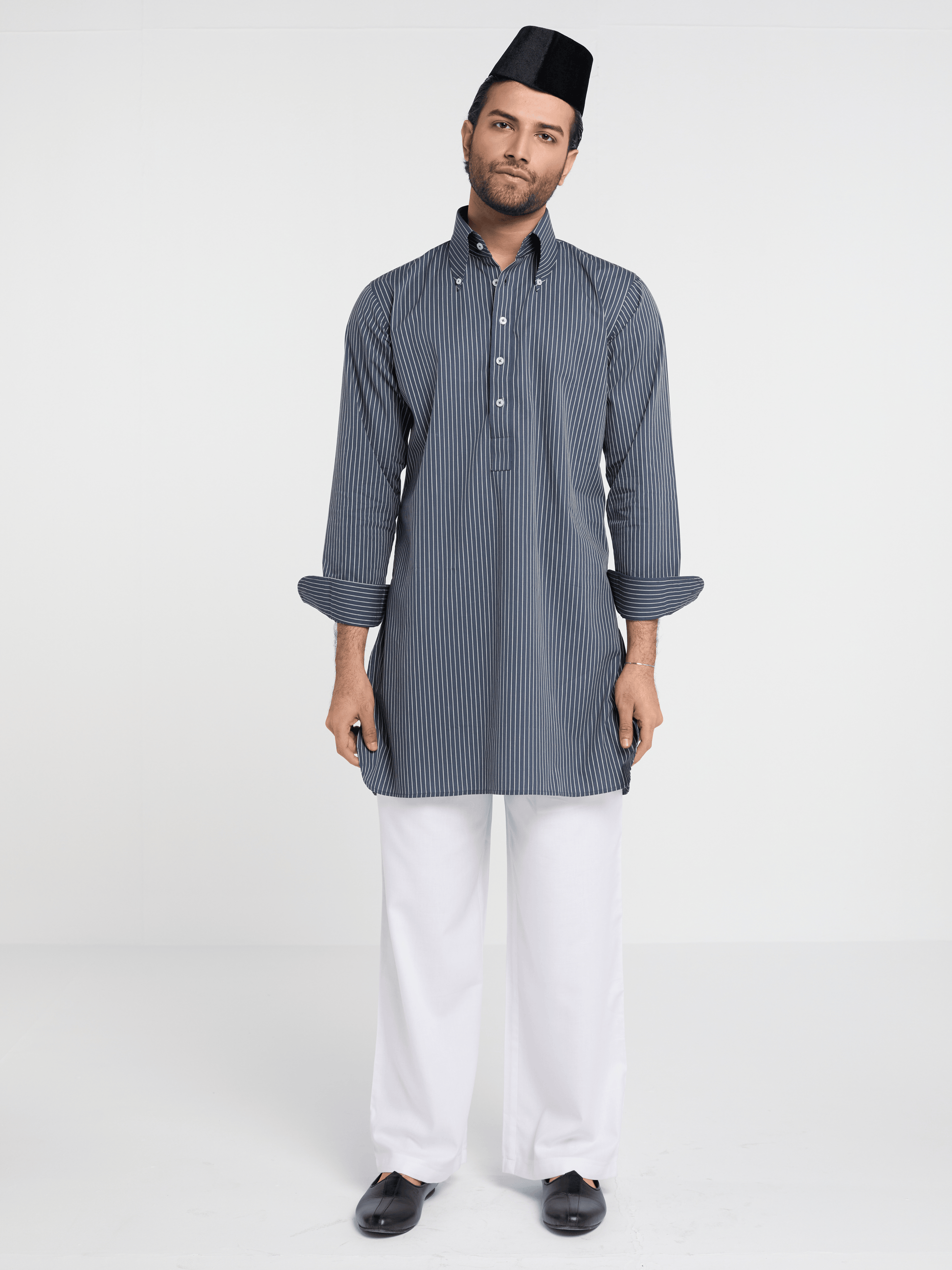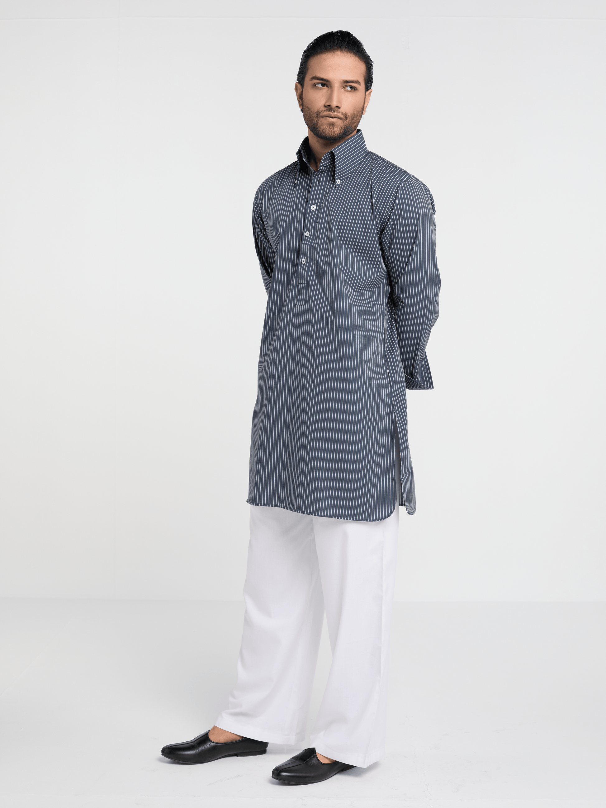 Crafted from Cotton fabric, this Kurta embodies sophistication with its effortlessly smooth texture and refined sheen. Designed for the modern gentleman, it features a tailored kurta with a structured band collar and subtle details.