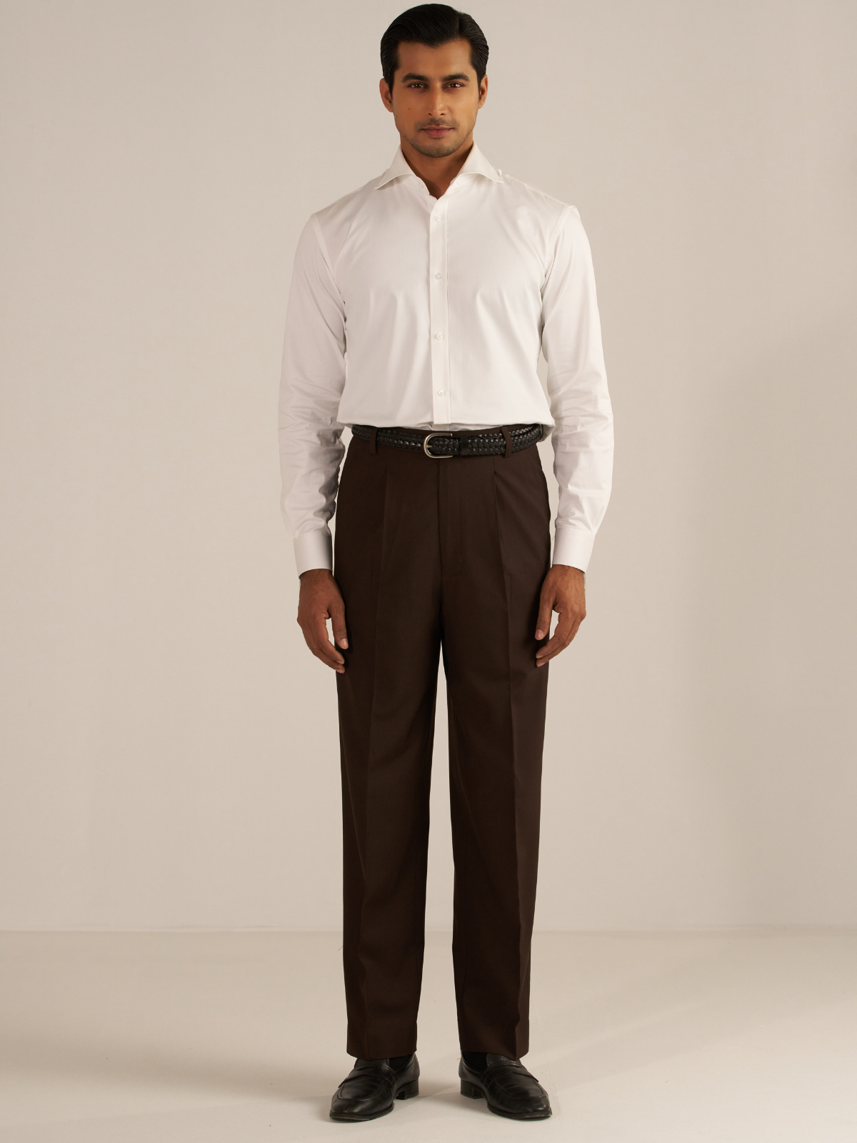 - Trousers cut with a sharp, streamlined silhouette