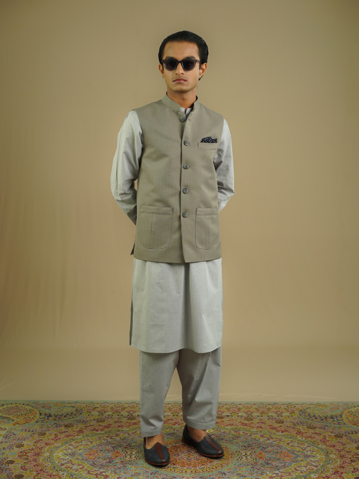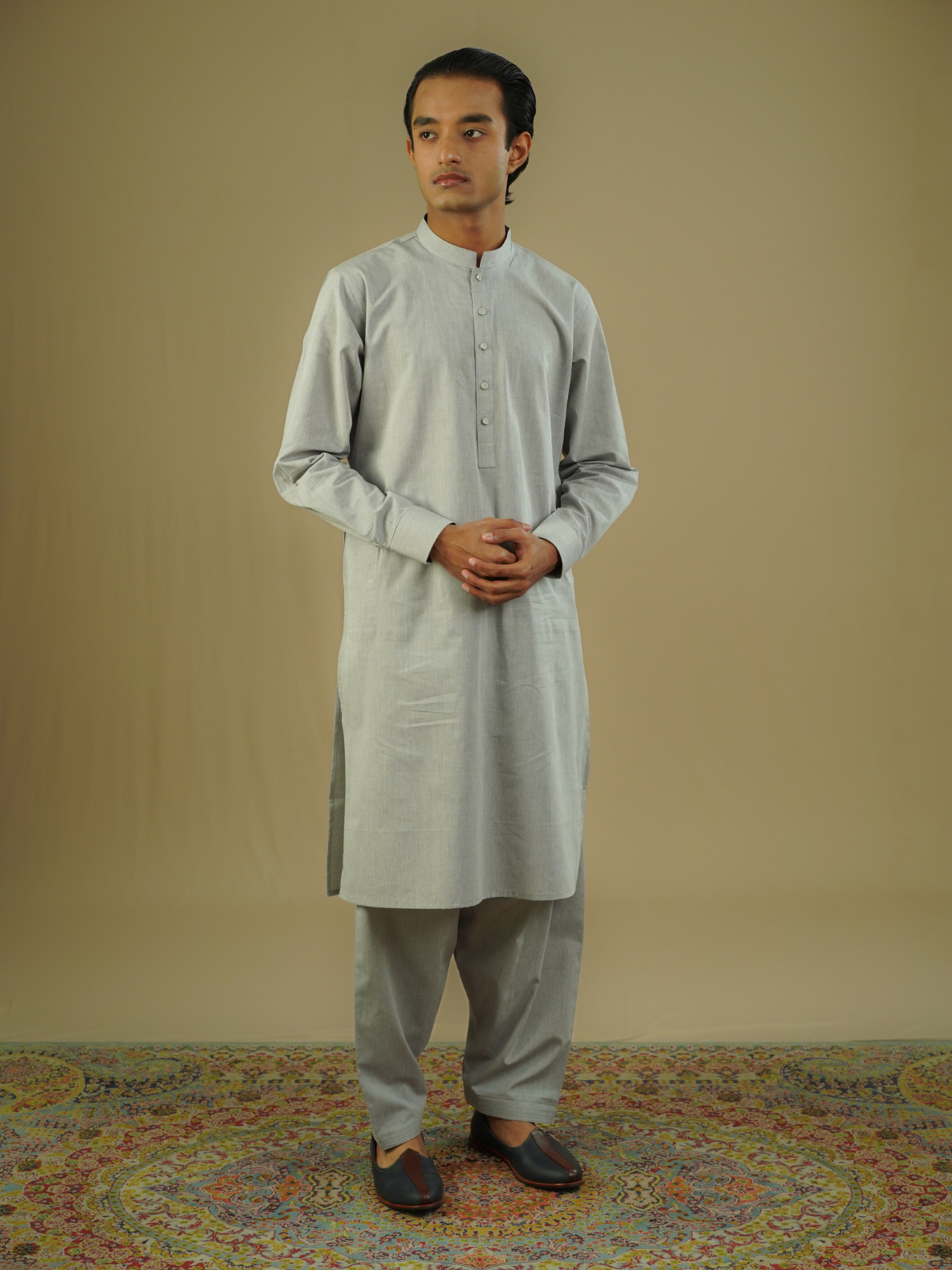 Our exquisite Kabli set, a fusion of traditional elegance and contemporary style that will elevate your wardrobe to new heights. Crafted with meticulous attention to detail, this ensemble embodies modern comfort and sophistication.