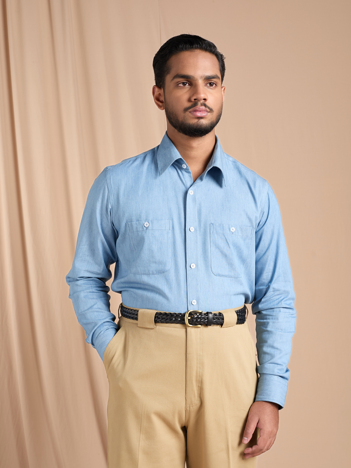 Timeless, versatile, and effortlessly refined — our Classic Denim Shirt brings modern sophistication to an everyday essential. Crafted from soft-washed lightweight denim in a clean chambray blue tone, it delivers comfort, breathability, and structure for year-round wear.