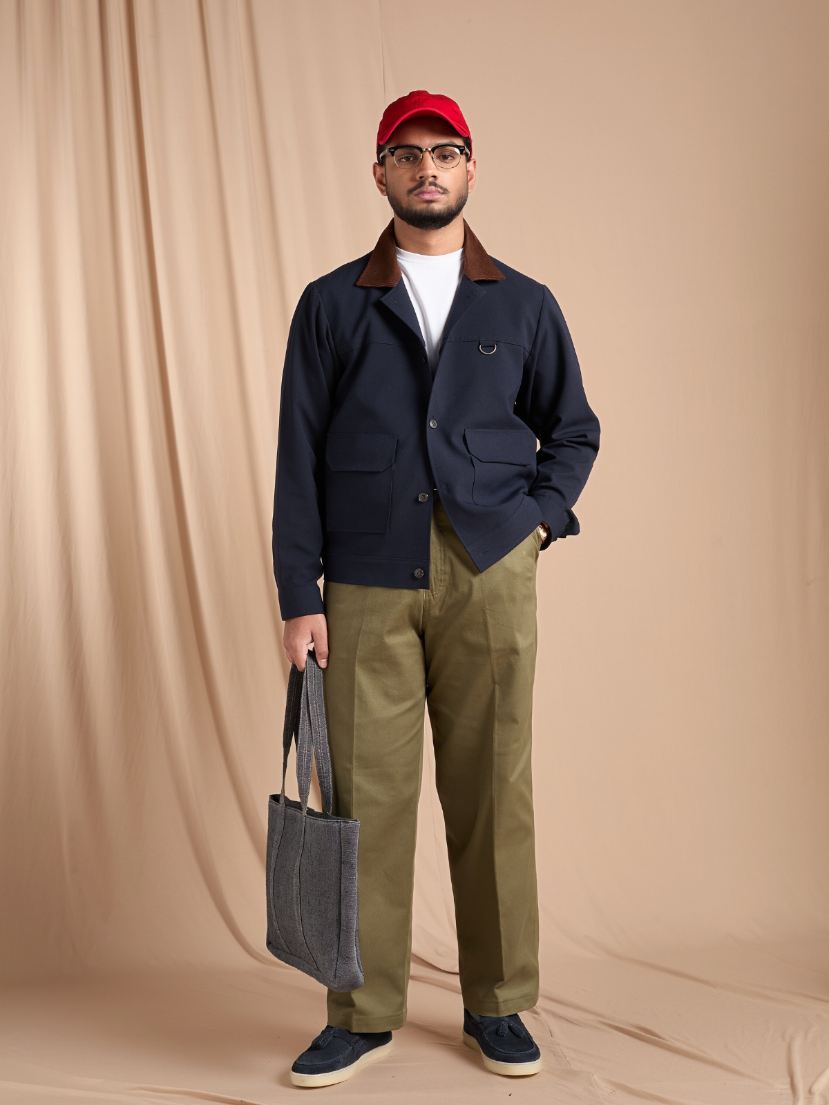 Functional, refined, and built for character — our Heritage Workwear Bomber blends utilitarian practicality with timeless design. Crafted from a durable cotton-twill fabric in deep navy, it’s accented with a contrasting chestnut corduroy collar for a rich textural balance that nods to vintage workwear roots.