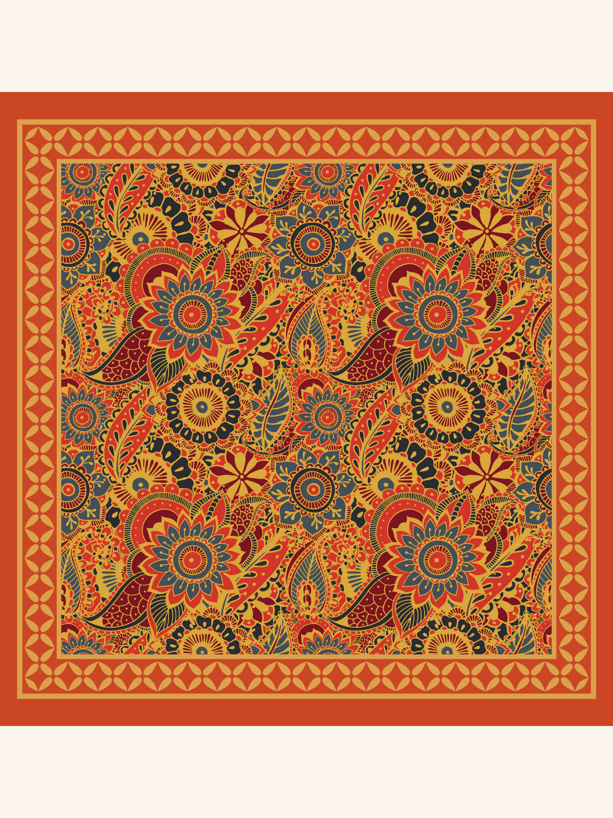 Crafted from charmeuse silk, this 13.5” x 13.5” pocket square features an exclusive in-house design by GW, blending artistry with timeless elegance. The machine-stitched edges ensure durability while maintaining a polished finish.