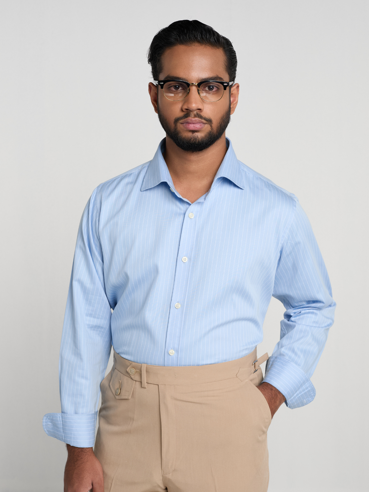 Cuff Design: Single cuffs, rounded for added refinement, perfect for a more relaxed yet sophisticated look.