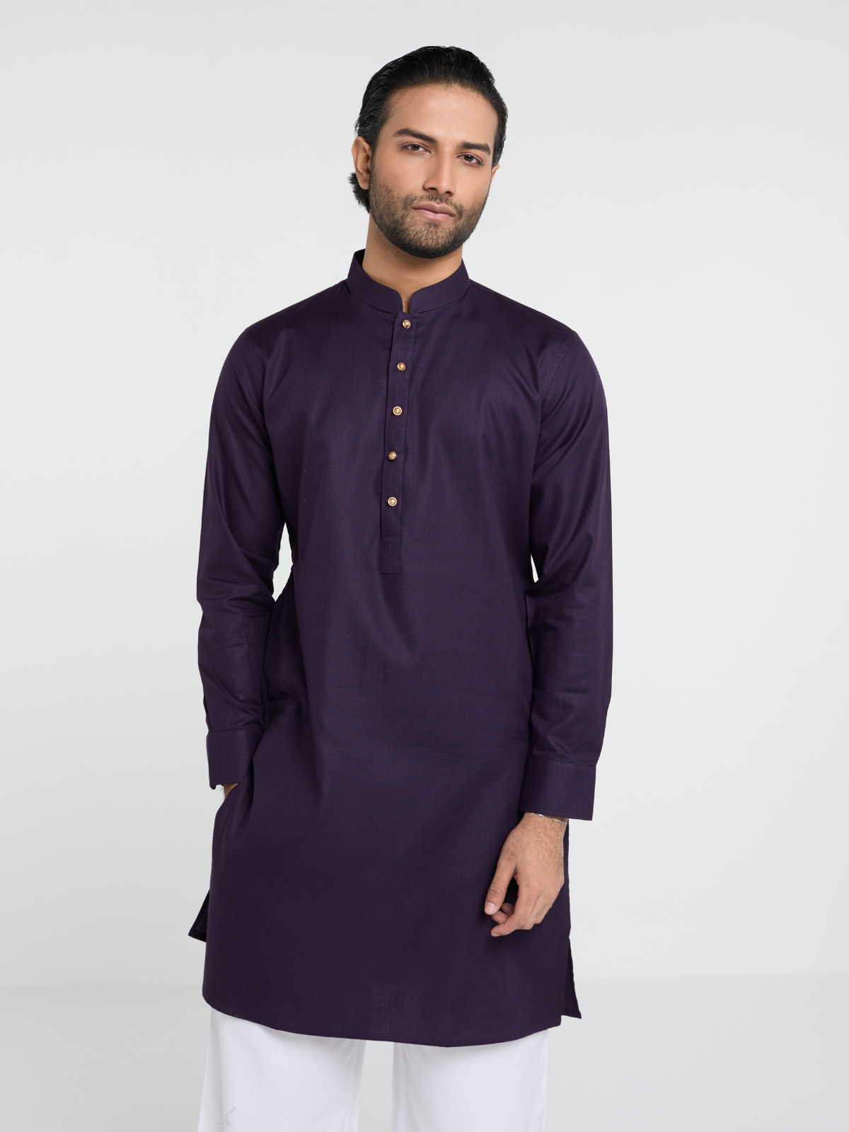 Crafted from Cotton fabric, this Kurta embodies sophistication with its effortlessly smooth texture and refined sheen. Designed for the modern gentleman, it features a tailored kurta with a structured band collar and Cuff details.