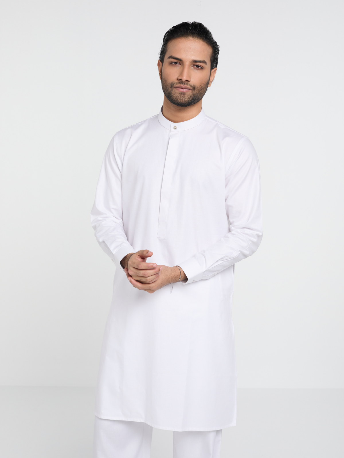 Crafted from Cotton fabric, this Kurta embodies sophistication with its effortlessly smooth texture and refined sheen. Designed for the modern gentleman, it features a tailored kurta with a structured band collar and Cuff details.